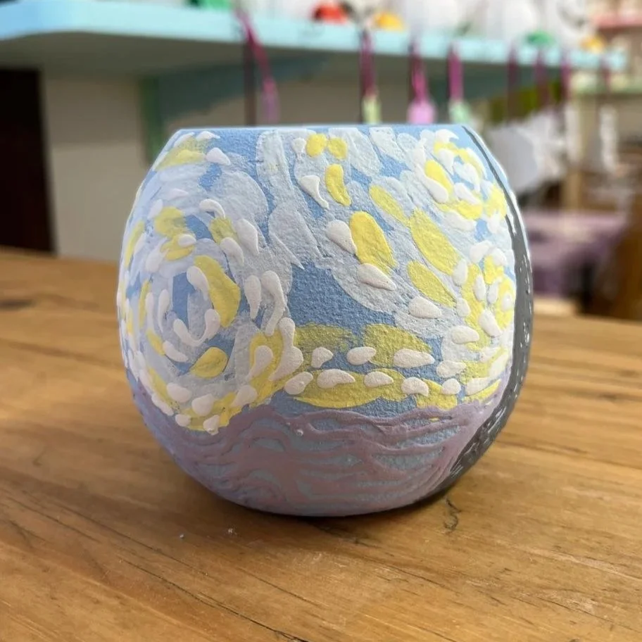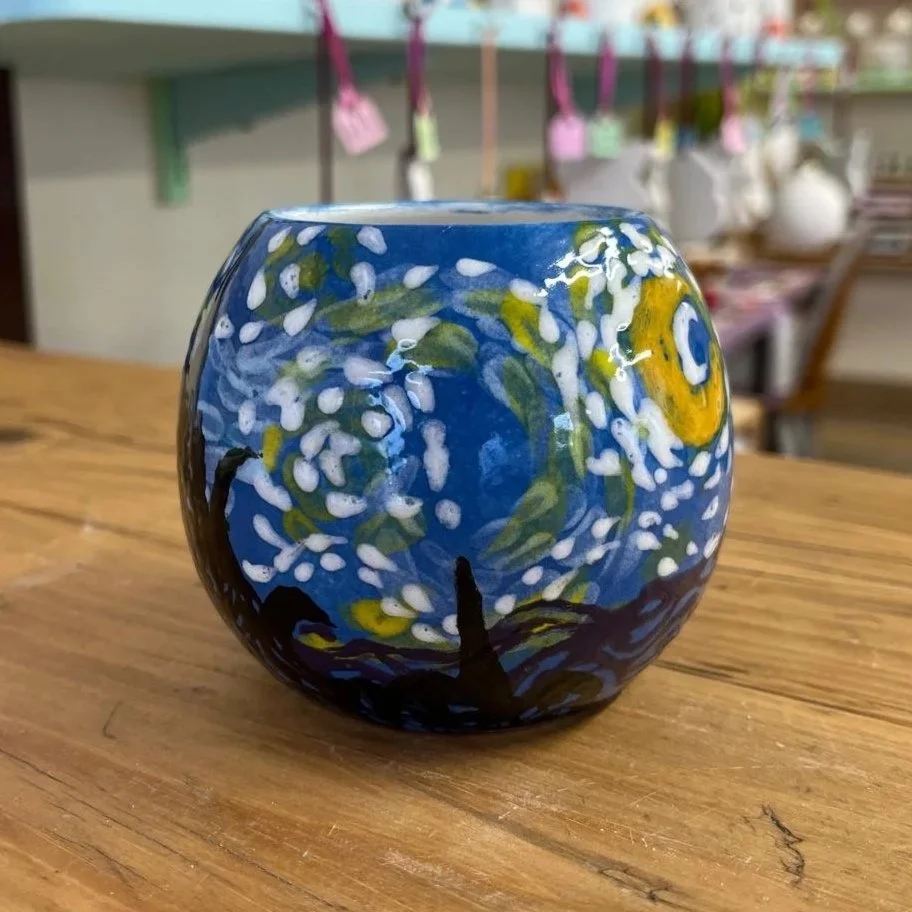 If you’ve never painted pottery before, it can be really difficult to understand just how much your creation will change before and after firing. So, to help you out, here are some pics of our visitors’ past pieces - first freshly-painted, then ready to take home!